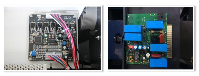 - เครื่องดีไซน์ใหม่ออกแบบแผงวงจรมาอย่างดีมีความเรียบร้อยมาก แบ่งแยกการทำงานส่วนต่างๆอย่างชัดเจน และตัวแผงวงจรยังติดอยู่ในกล่องอย่างมิดชิดเพื่อป้องกันการเสียหายและความคลาดเคลื่อนในการทำงาน ส่วนเครื่องเก่า การออกแบบวงจรมาจะไม่ค่อยดี อุปกรณ์IC ต่างๆขนาดใหญ่ดูเกะกะและมีการทำงานที่สลับซับซ้อนมาก