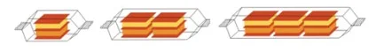 | ลักษณะการวางขนมในซองที่ใช้บรรจุ 2ชิ้น | 2 ชิ้น 1 ตอน | 2 ชิ้น 2 ตอน | 2 ชิ้น 3 ตอน |