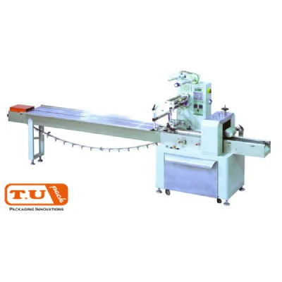 เครื่องบรรจุแนวนอน สำหรับแพ็คไอศรีม (Horizontal Packing Machine for Icecream Product) สำหรับบรรจุสินค้าที่เป็นก้อน เป็นชิ้น หรือสินค้าหลายชิ้นที่วางบนถาด สำหรับแพ็คไอศรีมลักษณะแท่ง ตัวเครื่องทำจากสแตนเลสคุณภาพสูง ทนทาน ทำงานเต็มประสิทธิภาพ