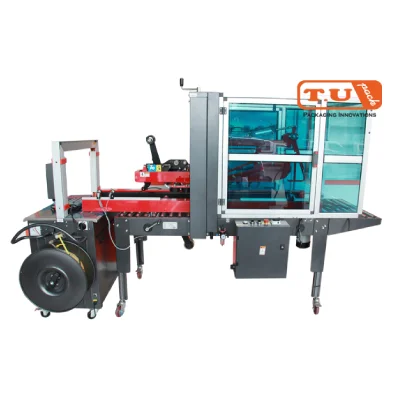เครื่องปิดเทปกาวกล่อง แบบอัตโนมัติ รุ่น MH-FJ-3AE เครื่องปิดเทปกาวกึ่งอัตโนมัติ พร้อมเครื่องรัดกล่องอัตโนมัติ ในตัวเดียวกัน ดีไซน์ใหม่ล่าสุด ตัวเครื่องทั้งสองมีความแข็งแรงทนทานเป็นอย่างมาก เนื่องจากทำจากเหล็กหนาพิเศษคุณภาพสูง และฝาของเครื่องรัดกล่องยังเป็นสแตนเลสอีกด้วย ใช้งานได้ง่ายดาย สะดวกและรวดเร็ว ระบบการทำงานไม่ซับซ้อน